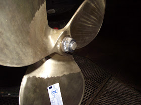 I didn't get started on the propeller swop until just after lunch time as the other boat in the dock with us had a really thick growth on the hull which took a long time with the pressure washer to shift.