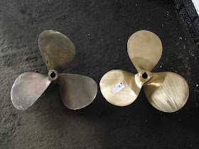 New prop went on OK with just a bit of fettling with a file to the keyway, new hole drilled for the new spit pin and that's it, a quiet propeller we hope.
