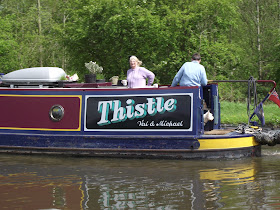 Today we had planned to move up the Braunston Locks, the rain stopped at 9.30 so we got going, as we tied up on the lock mooring for the bottom lock someone shouted across from a boat outside the Chandlery that they would come up the locks with us, this was good news as it was Phil who owns Wharf House Narrowboats which is situated close to the bottom lock, he was taking a boat to the Crick Boat Show and had plenty of helpers, in fact we didn't have to operate any of the locks, his crew did the lot, what a result.