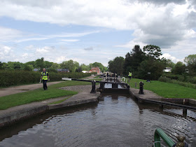 Volunteer lock keepers at the Fradley locks and everything running smoothly.