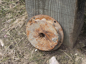 Unusual object to find leaning up against a post by our mooring, it's the centre hub of a broken drive plate which fits between the engine and gearbox on most modern boats, it's covered in mud so may have been dredged up, if only it could talk, it would tell us about the abuse it suffered going forward - reverse - forward to quickly, about the person with oily hands who removed it and threw it away without any thanks for the years loyal service it had given, then, being rescued from the mud and allowed to rust away peacefully on the side of the Oxford Canal.