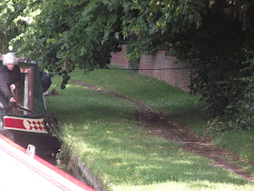 No pictures today so here's one from yesterday taken when we stopped at Weedon for breakfast, if you look carefully you can see a rope from the top of the boat to a tree.