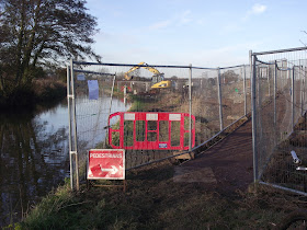 After another visit today I can report that things are moving again with work to divert the towpath over a bridge which will become the marina entrance. I'd like to think that the M.D. read our blog and thought he had better get on with it, but that would be complete fantasy.